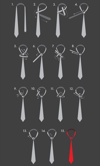 溫莎結(jié)(Windsor Knot)是一種再經(jīng)典不過的領(lǐng)帶打法了,不過因為這種領(lǐng)結(jié)非常飽滿,特別適合正式場合,因此很少被運用在日常生活中。在經(jīng)典領(lǐng)帶打法中,溫莎結(jié)也算是一個難度比較高的領(lǐng)帶打法,下面請看圖解。